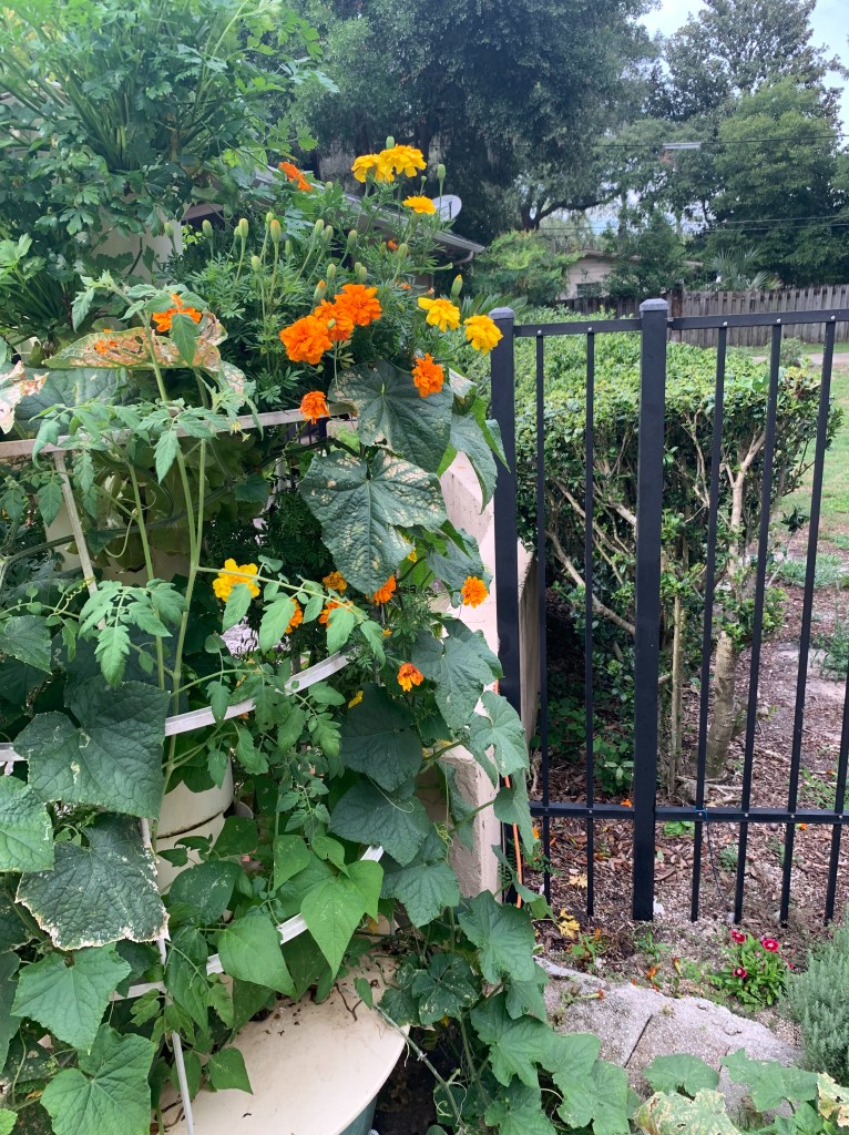 I then move it outside to my pots or even into the ground. I love the mint but it spreads quickly if it is not in a pot. One of the benefits of having a hydroponic gardening tower is that I can easily grab cuttings and experiment. I also take the tops of my pineapple and kitchen foods and try them. It is amazing that life finds a way – just like I have to. We all have to regrow where we are planted.