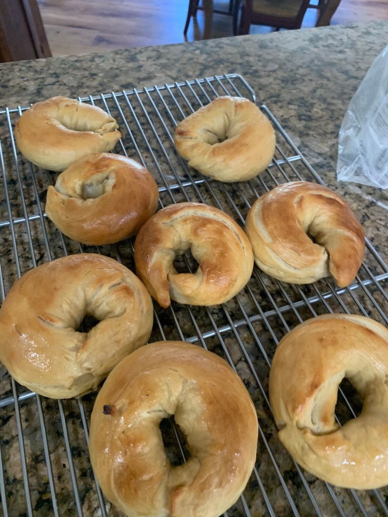 One of our favorite times as a family is creating in the kitchen. What we will create next? Pictures are of some recent challenges – bagels and cinnamon raisin bread – recipes from Martha Stewart’s Baking Textbook.