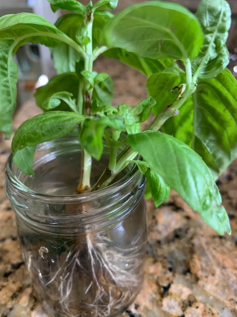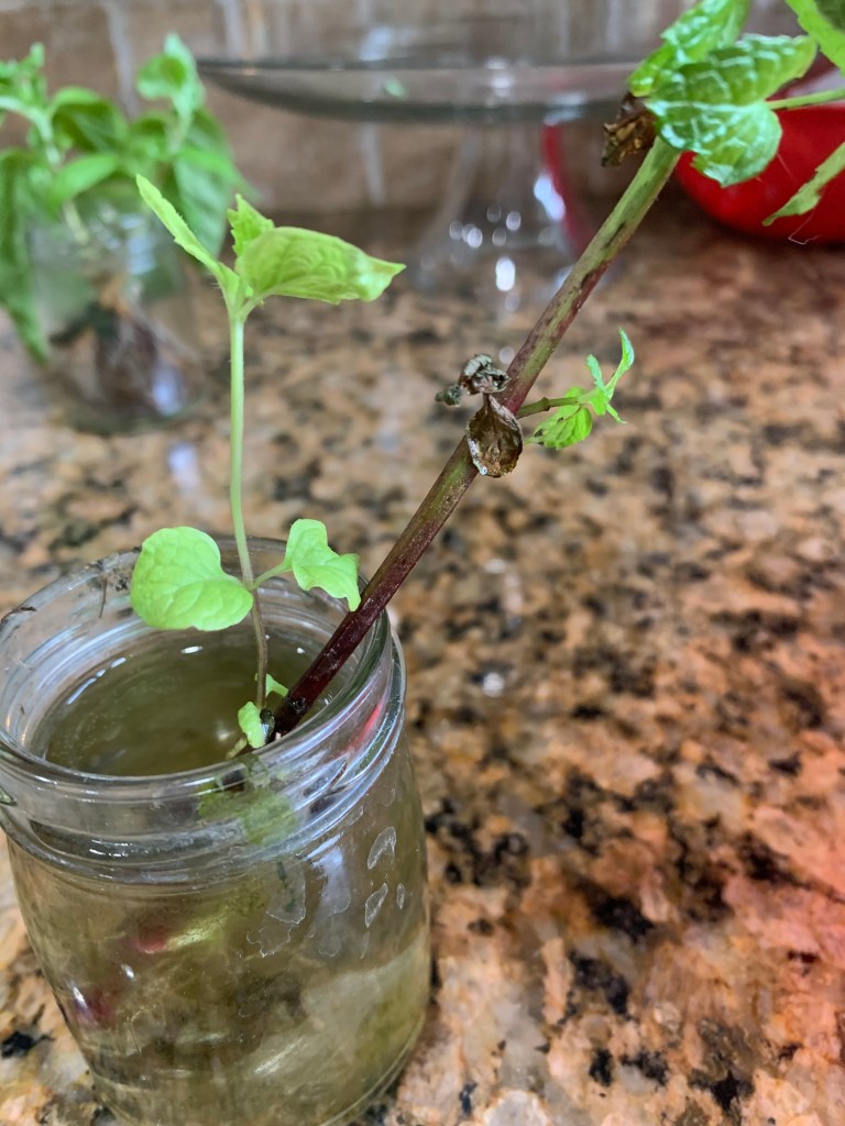 One area that has caught my focus is recycling in all different ways. I love the idea of reusing what we have or what others can help us with. One area that I have been experimenting with is the propagation of plants. I try most every plant that we have in the backyard seeing if I can grow them from another one. I started with the easy ones like herbs – mint, basil, my lavender, and such. It is great. I recycle my yogurt pots that are glass and fill them with water. I then take cuttings and put them on my kitchen window until they start to root. Wait and watch – you might have to add water as it is used or evaporates. (The water cycle) I have tried others but will show you in another post.
