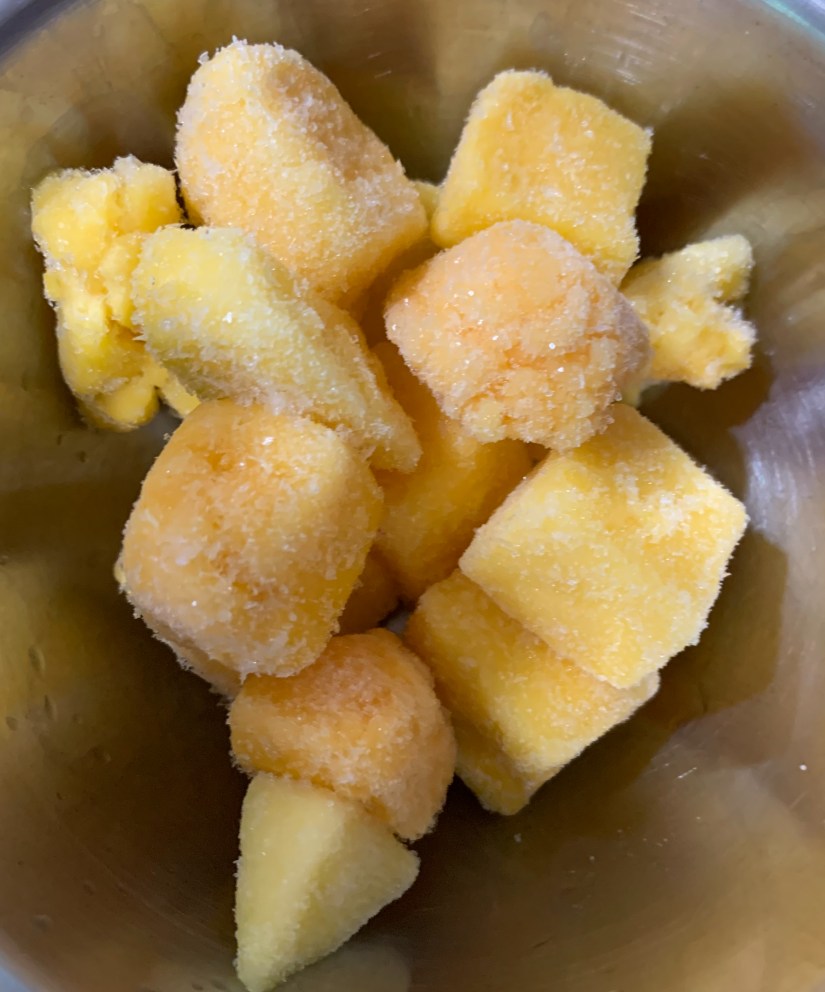 As you can see above, I do not use a lot of liquid as my smoothie are mostly made from fresh fruits. If you use more frozen fruits, you might need to add some water or more orange juice so that it will blend easily.