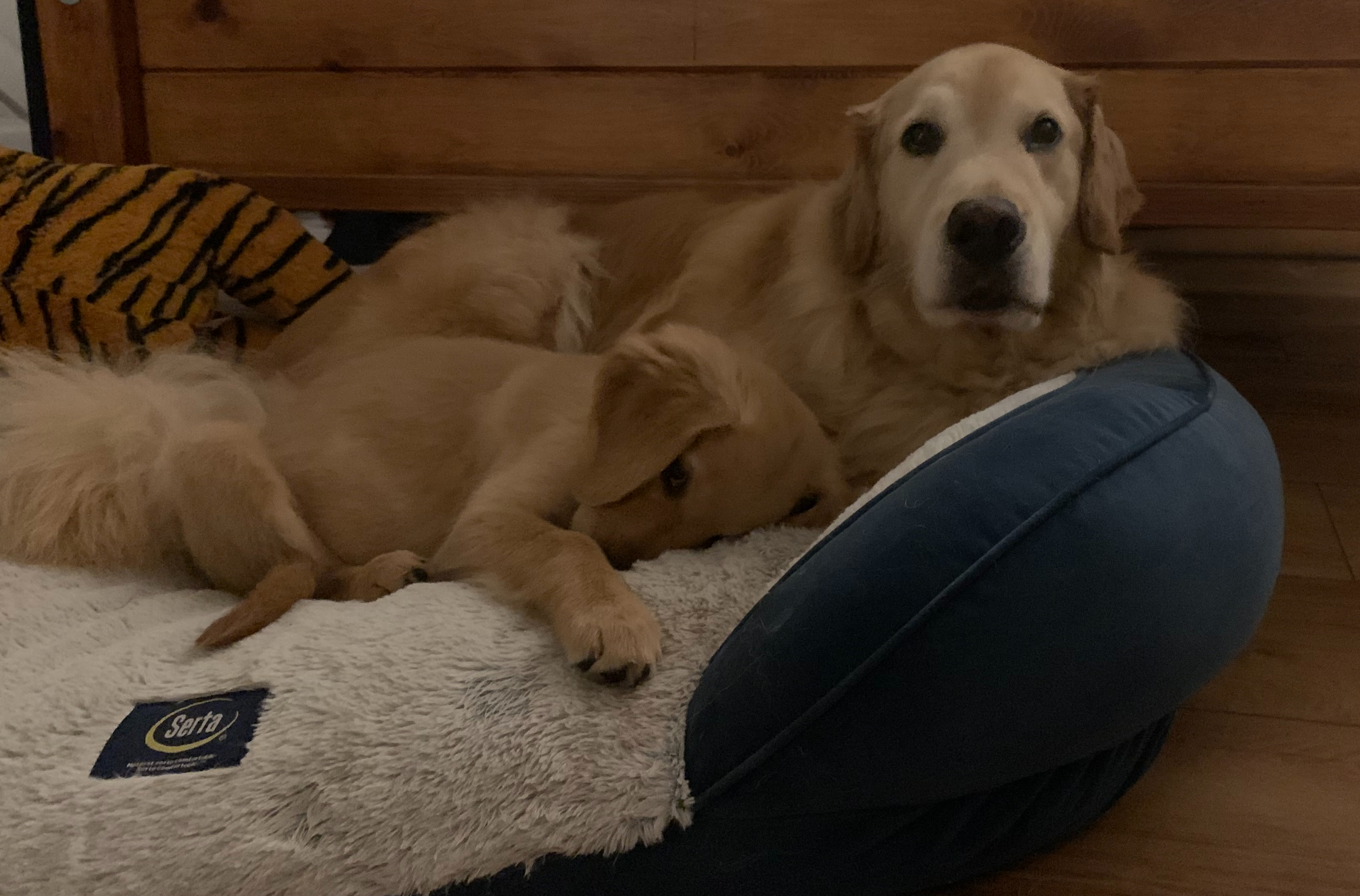 The puppy is finally becoming a playmate to Tallulah and it is fun to see them chasing each other around the house. Meadow and Lego have become the wrestling duo. Whether a stuff toy between them or just fur, they have been enjoying the physical activity – we think. Lego is a trooper helping us expend Meadow’s growing energy. Tallulah is not too far from the action in case she wants to play.